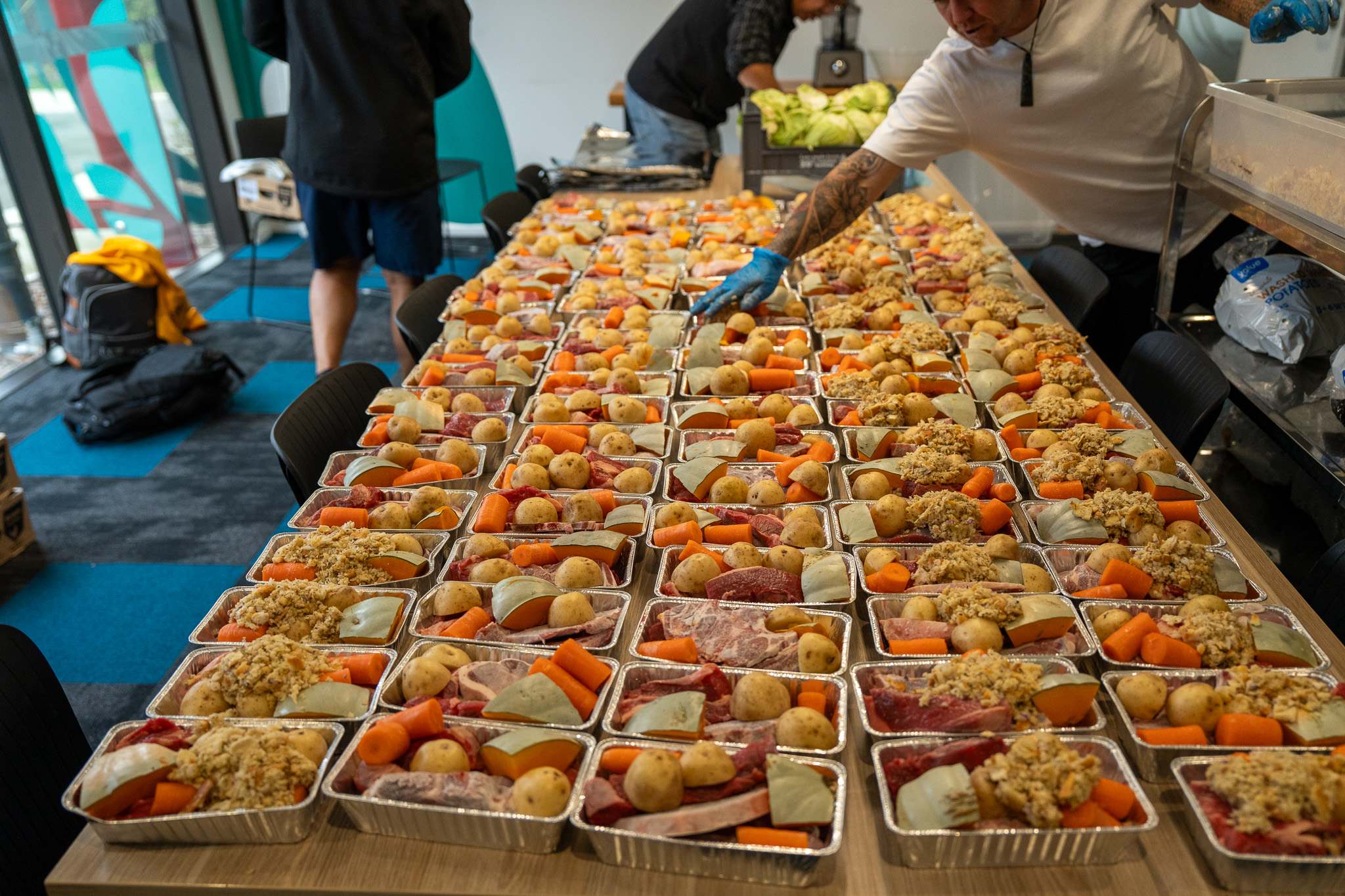 Every plate was prepped, packed and served by our own kaimahi & tangata whaiora, from chopping veges, preparing the stuffing to steaming hāngī and handing it out with a smile.