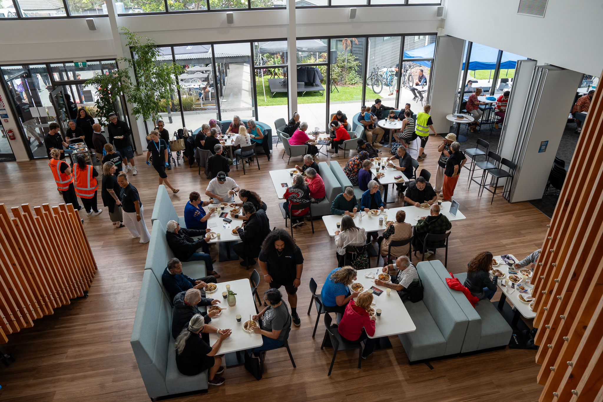 Music throughout the day, provided by Emile, set the wairua and created a welcoming atmosphere that encouraged people to stay, kōrero and connect. Alongside this, rongoā Māori services, raranga, kapa haka performances and pounamu workshops supported holistic hauora and the sharing of mātauranga Māori.